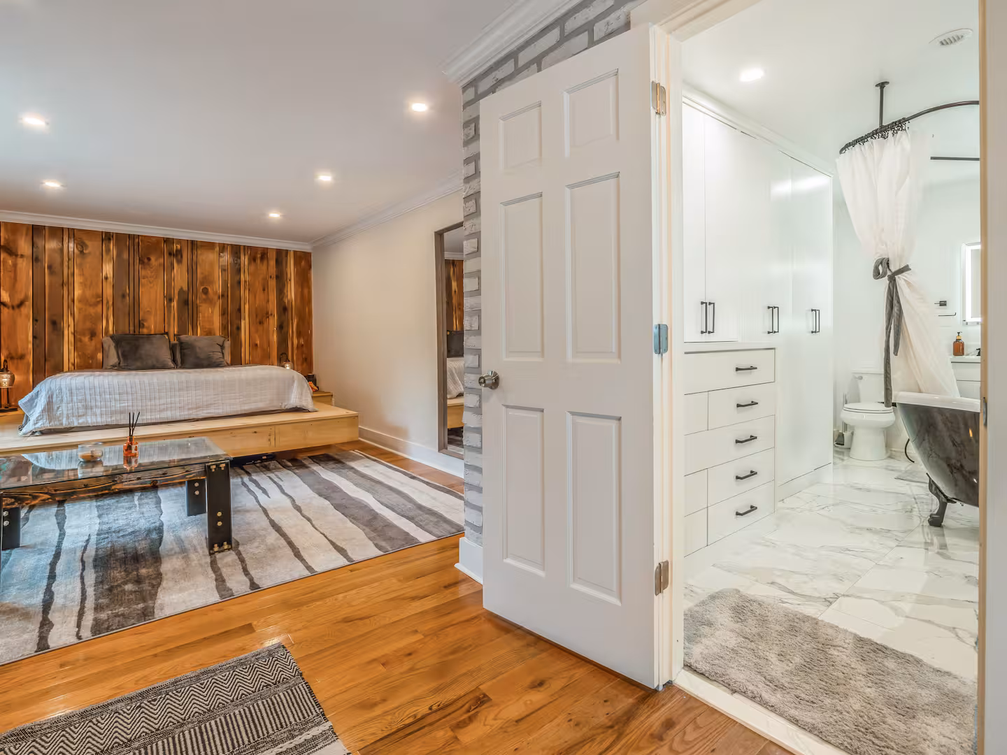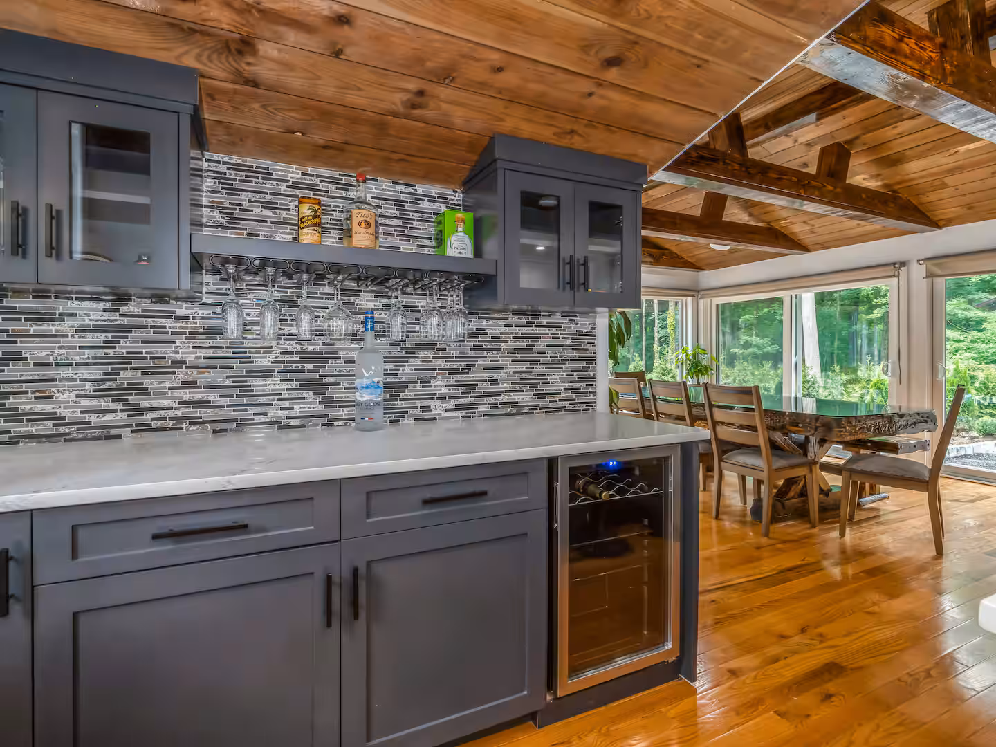 This charming family home offers the perfect blend of comfort and relaxation. The spacious kitchen, with its modern appliances and rustic wood ceiling, is ideal for cooking meals together, while the open dining area provides a cozy space for gatherings with beautiful views of the surrounding nature.